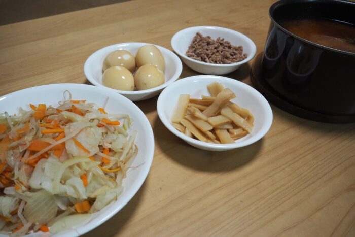 家族5人分のラーメンを用意する上で、私が面倒に感じているのは、具材の盛り付け。そこで、子どもが小学生になってからは、器に麺だけを盛り付け、そのまま食卓に出しています。
