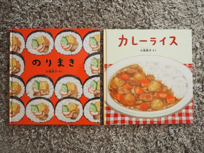 「のりまき」と同じ作者・小西英子さんの「カレーライス」も一緒に購入しました。この絵本も、カレーライスの料理手順が丁寧に描かれています。カレーライスは、小学校高学年になると放課後デイサービスのみんなで作ると聞いています。今はまだ眺めて楽しむだけですが、いずれ調理を教えるときには、この絵本がきっと助けになると思っています。