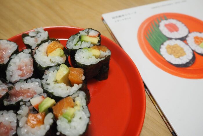 まずは恵方巻き。わが家ではなるべく、家で作っています。酢飯と具材を用意して海苔で巻くだけなのですが、意外と時間がかかります。平日に作るのはちょっと厳しい…。そこで、週末に恵方巻き作りをしました。